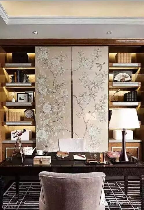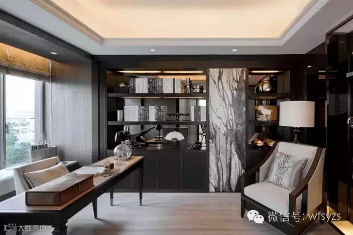 无论读书还是思考,书房作为人类取之不尽用之不竭的精神宝库,都是一个陶冶性灵的绝佳处所。一个茶香墨韵的新中式书房在表现了其自身的功能与形式外,通常也可以窥见主人的身份与品位。因而常常在庄重典雅的氛围中流露出深厚的文化底蕴,给人一种涉足探步的冲动和欲望。