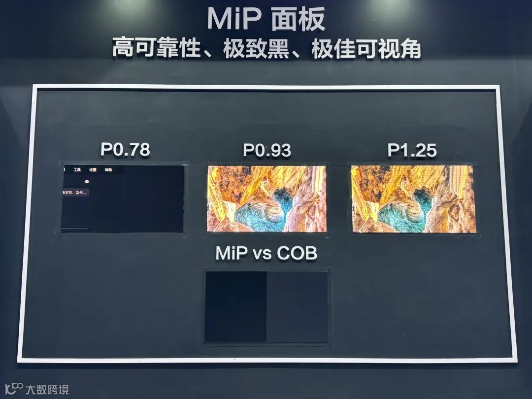 屠孟龙指出,两种技术在显示精度和应用场景上存在差异:“目前MiP封装规格可以支持P0.4以上的微间距显示需求。相比之下,玻璃基封装技术展现出更强大的技术延展性,不仅能够完美适配P1.2、P0.9等常规间距,还能实现P0.4以下的超微间距显示。”