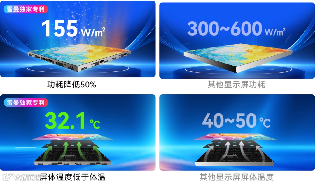 该款产品优化集成电路与显示技术,实现“亮度提升不增耗”突破:屏幕在常规600cd/㎡亮度下最大功耗仅155W/㎡,相比较同类产品功耗节省50%,真正实现绿色节能,有效节省成本。