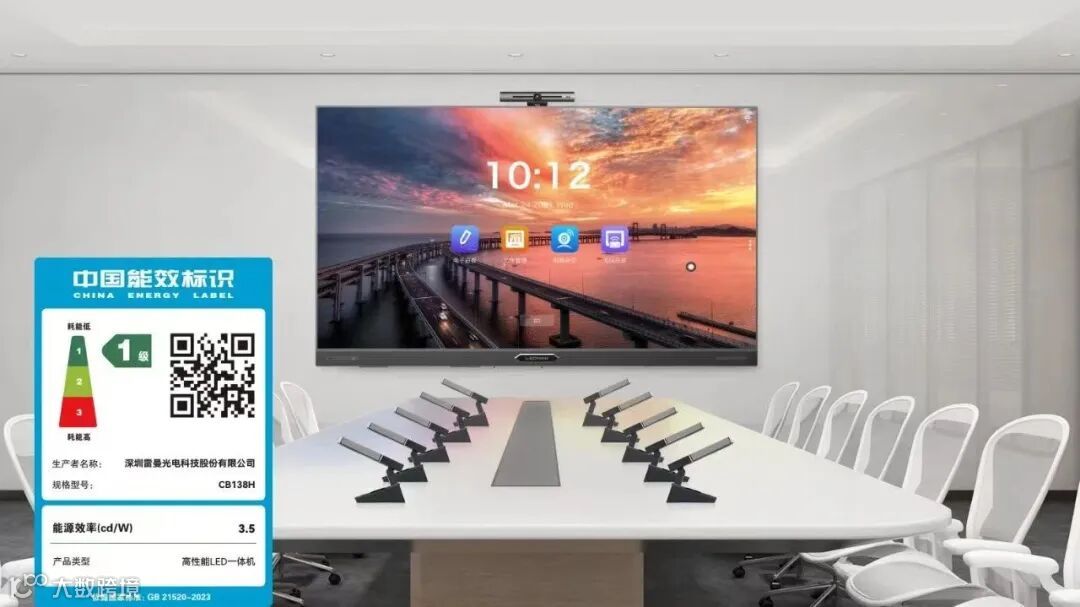 雷曼全系列COB一体机于今年通过《显示器能效限定值及能效等级》(GB 21520-2023)1级认证。