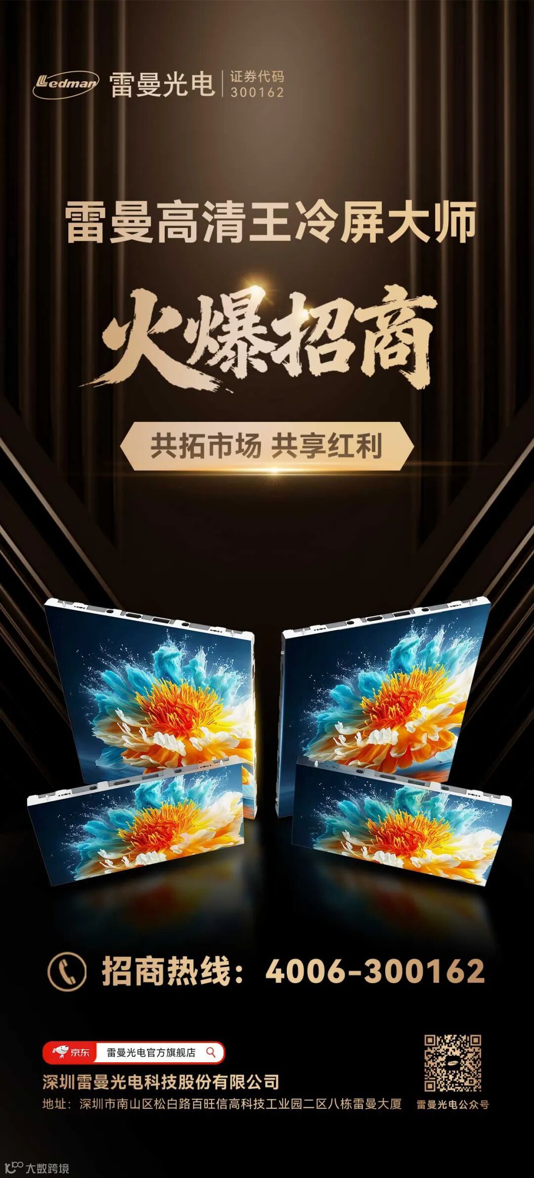深圳雷曼光电科技股份有限公司(证券代码:300162)是全球领先的LED超高清显示专家,8K超高清LED巨幕显示领导者,中国第一家LED显示屏高科技上市公司,中国航天事业战略合作伙伴,2022北京冬奥会开幕式冰雪五环出品商。