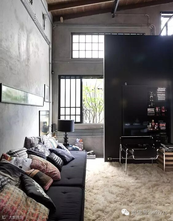 这种低彩度的沉稳气韵让水泥毛坯房适合各种风格装饰