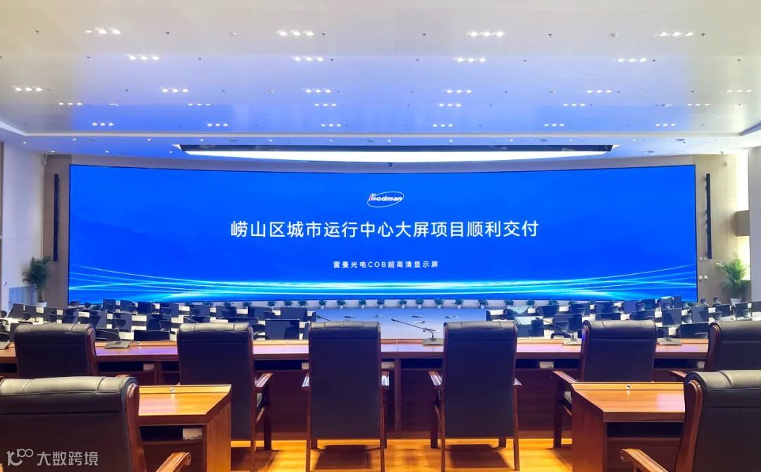在山东省青岛市崂山城市运行中心,一块超大尺寸的指挥中心LED巨屏正以分屏画面精准呈现各类公共信息、时空数据。这是雷曼光电为该运行中心打造的COB超高清大屏,主屏面积约150多平方米,分辨率超过20160*4320。