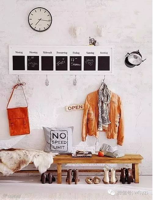 挂钩、木凳还有时钟的装饰,方方面面都考虑到主人的需求。