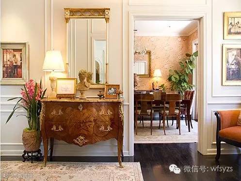 金色的边框装饰,柔美流畅的线条,赋予了玄关台优雅高贵的气质,也给生活增添一份温馨的居室情调。