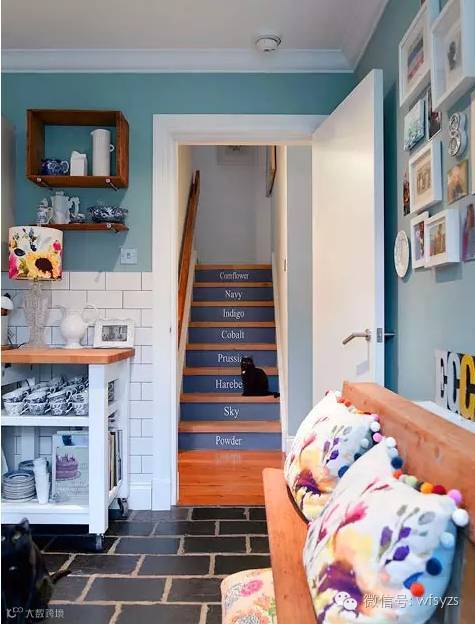 将换鞋、收纳集中在一起,自然组合创造出灵动的过道空间,绿色的植物和明亮的台灯,精美的装饰画,各式的明信片,布艺的收纳筐点缀出家的温馨舒适。