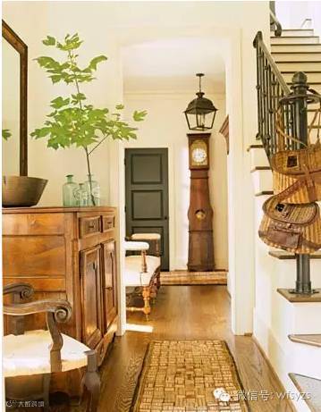 扎实的实木柜子看起来颇有质感,嫩绿色的树枝点缀出春天的气息,搭配上同一系列的座椅,让家庭室内走廊装修沾了一点人气,狭长的走廊上一张自然风味的地毯温馨柔和。