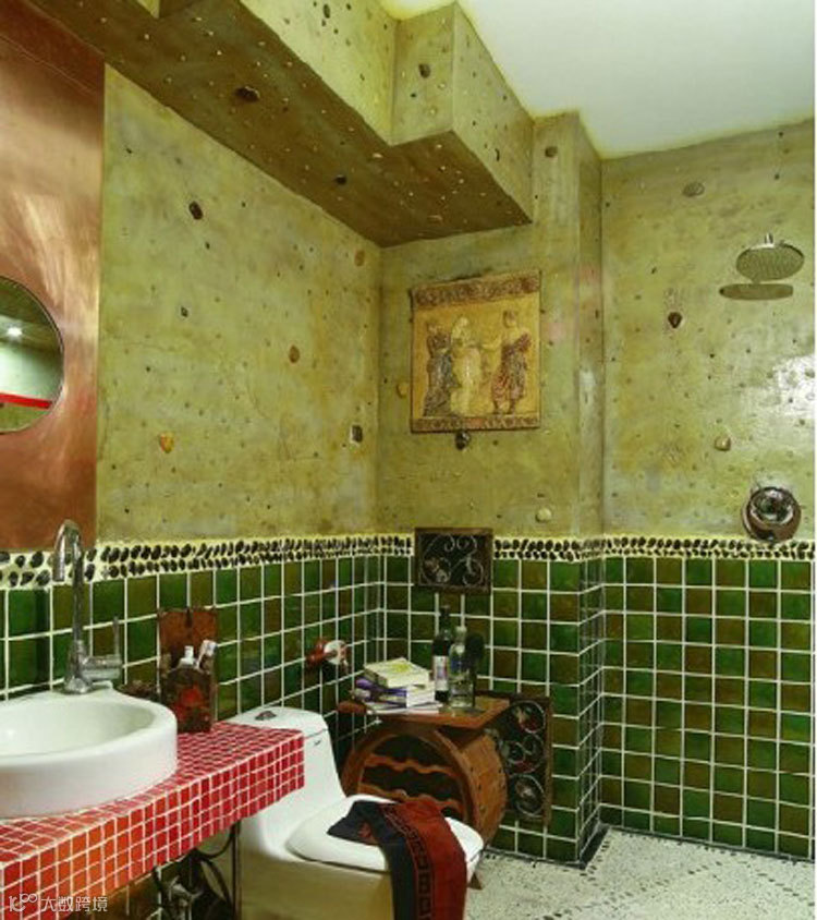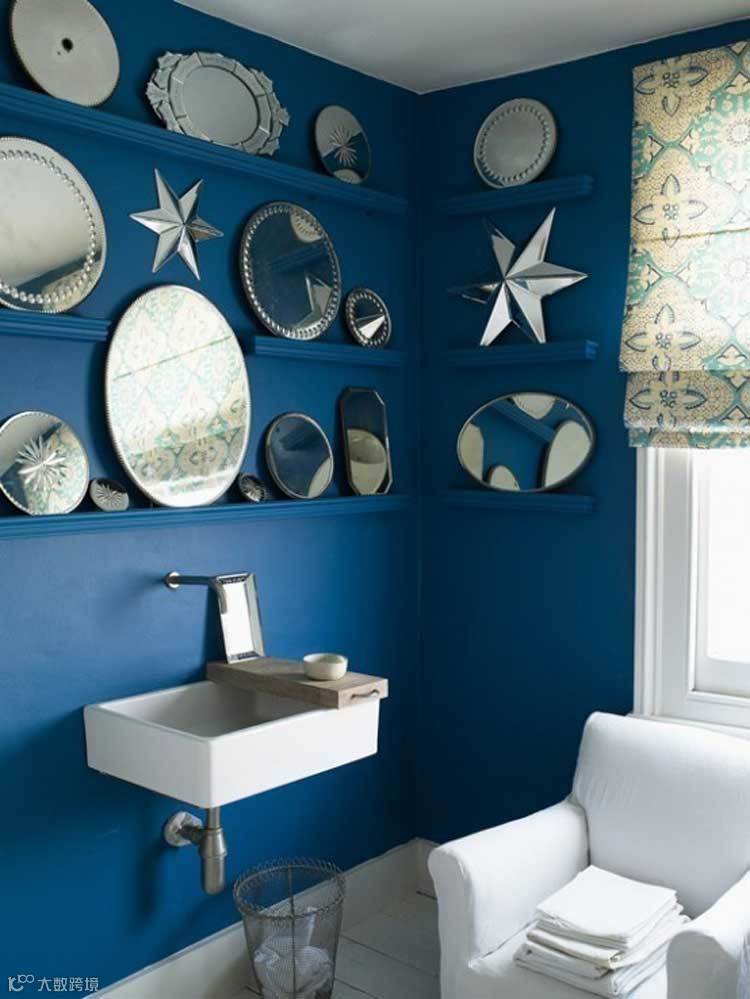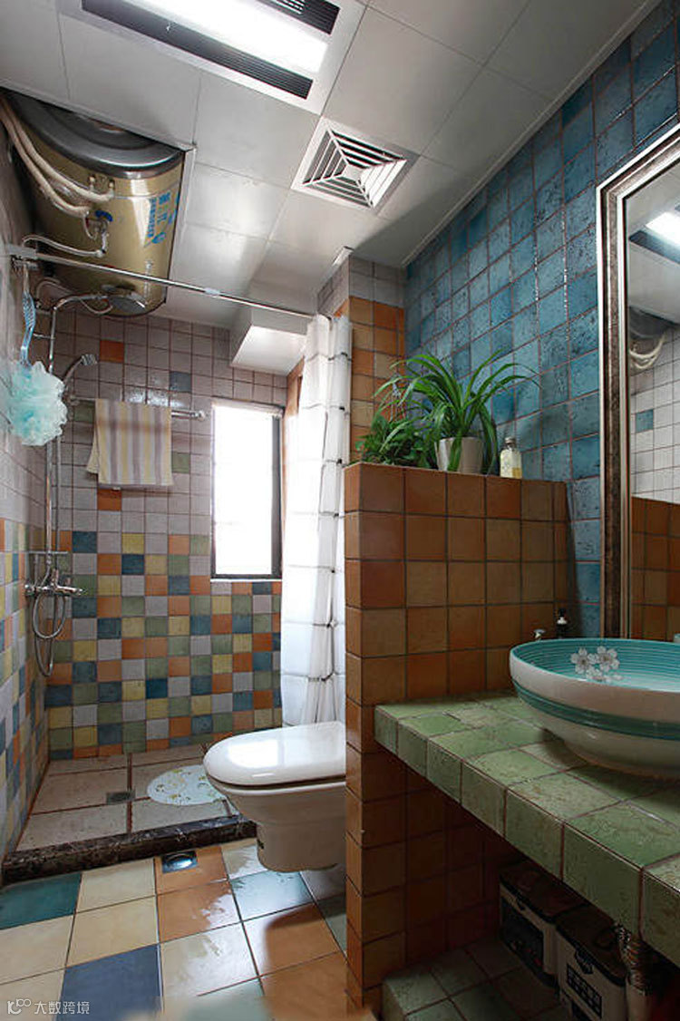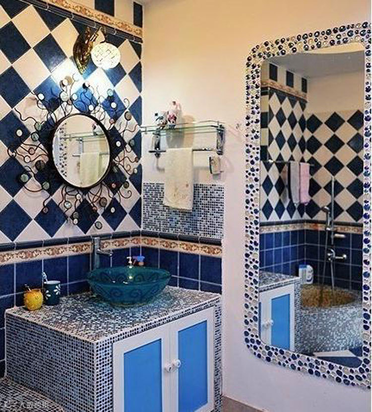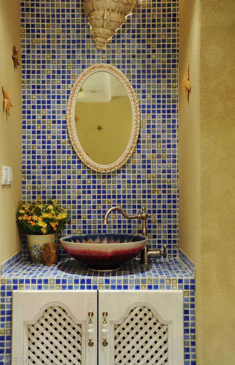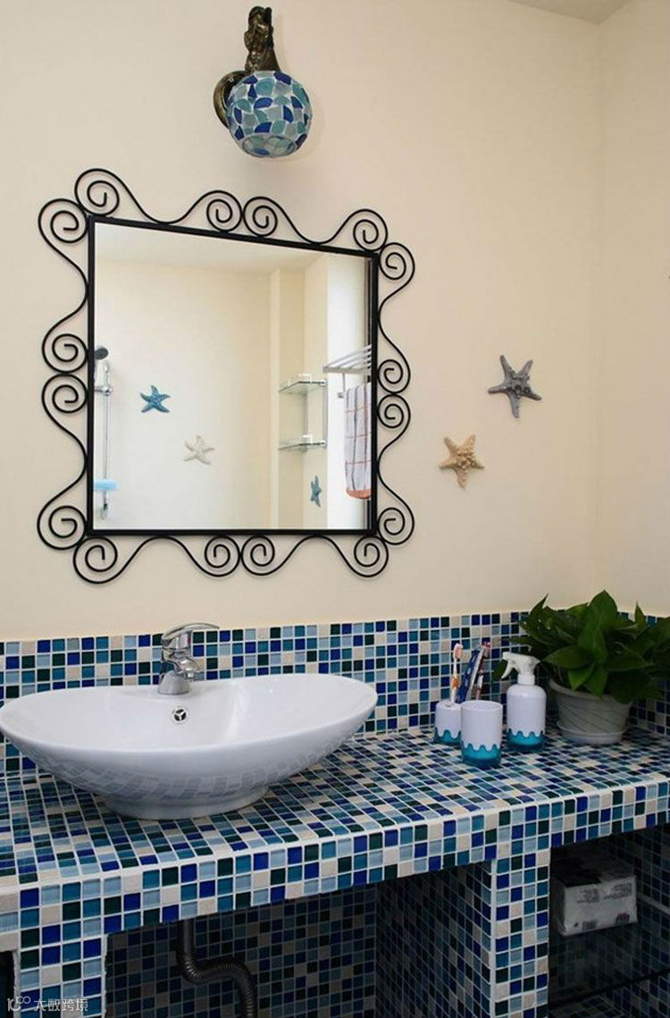 卫生间的装修在家居也是不容忽视的,地中海风格卫生间,以蓝色为主,让你每天都能感受到海风的清爽,当然也不乏其他颜色所带来的美感,原木的深棕色以及散发着土地温暖感觉的暗黄色,纯美的色彩方案,空间墙面上极富个性的画框,令地中海风格的卫生间随意慵懒,简洁明快,洋溢着浓郁的异国情,整体给人浪漫的感觉。