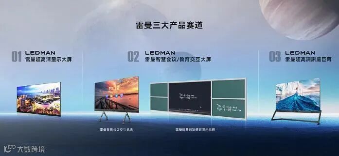 “在163英寸上实现1K、4K、8K,工艺精细度成倍提升,工程密集度几何级数变化……这样的条件下,实现突破就意味着设备、工艺、材料、控制技术等的全面提升”——为自主COB封装 Micro LED产品在全球占据领先地位奠定了基础。2021年,雷曼进军C端市场,依托先进的COB封装技术,提出小间距LED发展的1.0系列——即专用显示产品、2.0系列——即商用显示产品(如会议一体机、教育一体机)、3.0系列——即家用显示产品的产品战略,率先构建起以专业技术为支撑的"专显、商显和家显"三大COB产品矩阵和生态体系。