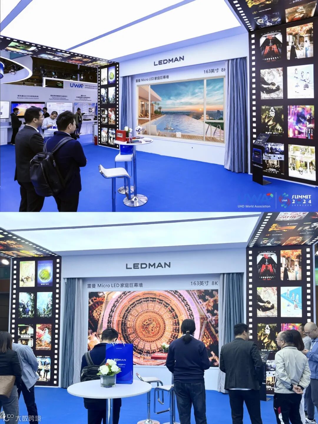 央视总台、深圳市工信局、福田区领导、世界超高清视频产业联盟各会员单位一行亲临展位体验,给予高度认可和赞扬。雷曼163英寸8K Micro LED 超高清家庭巨幕墙所呈现的卓越画质与创新技术,为参会者带来了一场无与伦比的视觉盛宴。