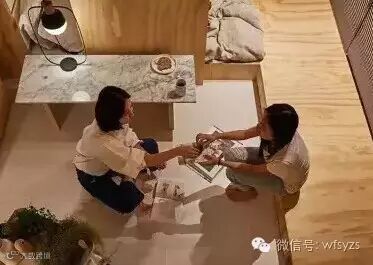 不仅如此,它还可以升降,支起一只小桌子。这是设计师在空间小的限制下,将空间向第三位扩展,采用空间错落手法,将空间利用到极致。