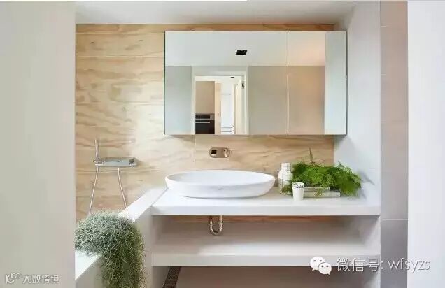 在小空间里,收纳其实就显得尤其重要。卫生间也是,洗漱台面上没有置放过多物品,而大多都摆放进了镜子后面的储物柜。