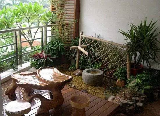 阳台上设置一个小鱼塘,看看鱼儿游来游去也很享受吧。