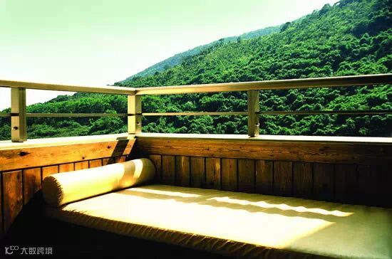 实木躺椅加上绿色植物,瞬间穿越到古代。