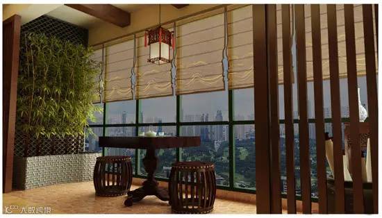 窗帘、竹子、灯,好古典的中式阳台。