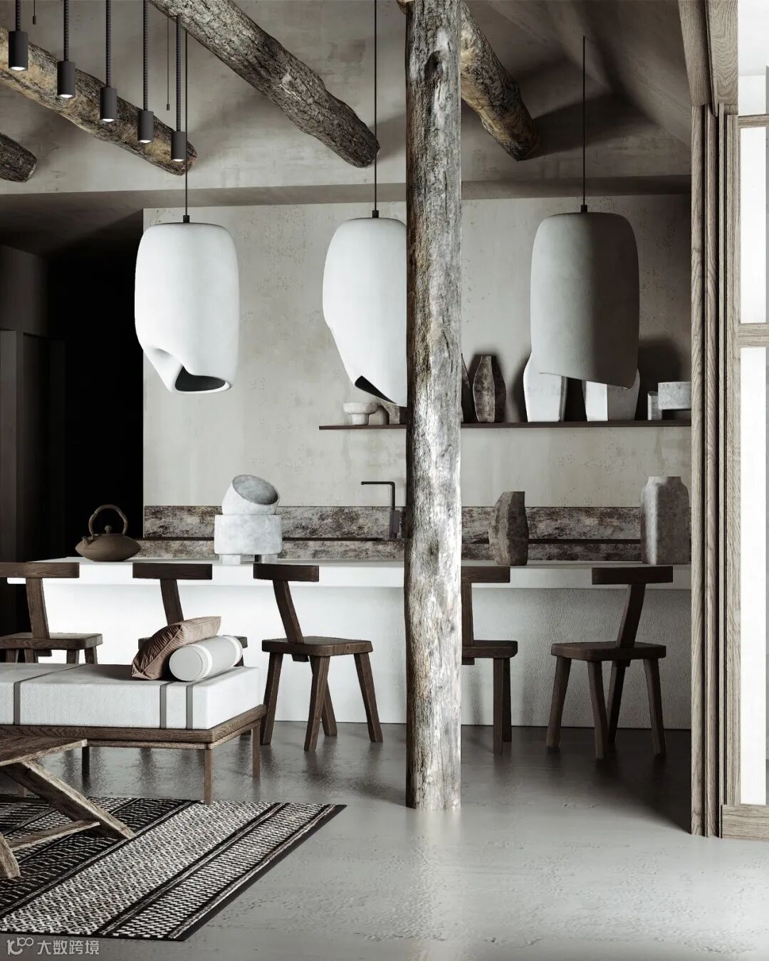 重点表达出侘寂风本身粗犷,干枯,破烂