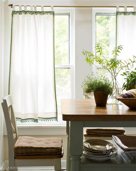 窗帘的主要作用是与外界隔绝,保持居室的私密性,同时它又是不可或缺的装饰 品。冬季,拉上幔帐式的窗帘将室内外分隔成两个世界,给屋里增加了温馨的暖意。现代窗帘,既可以减光、遮光,以适应人对光线不同强度的需求;又可以防风、除尘、隔热、保暖、消声,改善居室气候与环境。因此,装饰性与实用性的巧妙结合,是现代窗帘的最大特色。