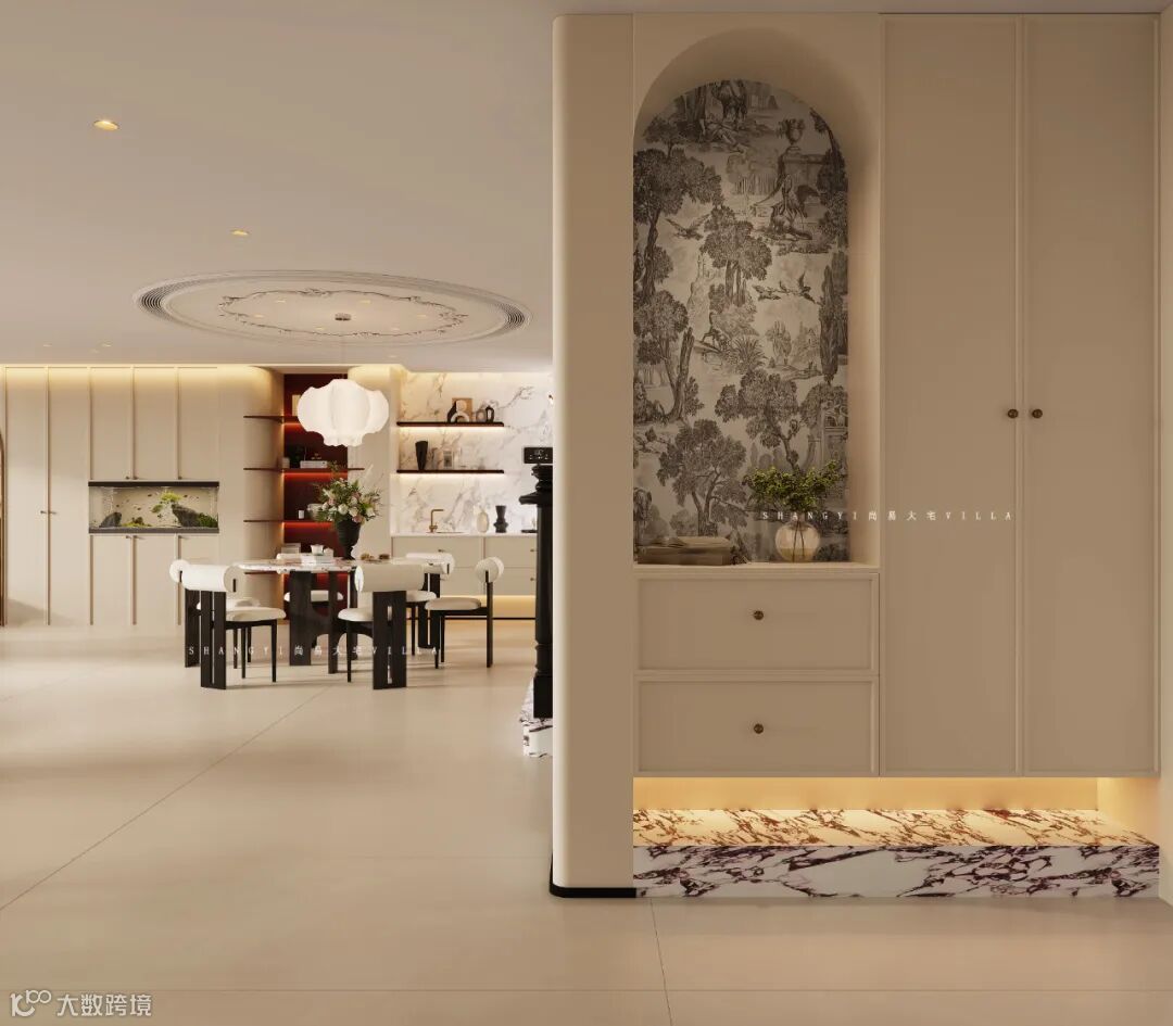 轻法式设计以优雅的曲线、柔和的色调与精致的细节著称。本案例,通过空间布局、材质碰撞与家具陈设的巧妙搭配,将法式浪漫融入现代生活场景,呈现出「低调奢华却不失温度」的居住美学。