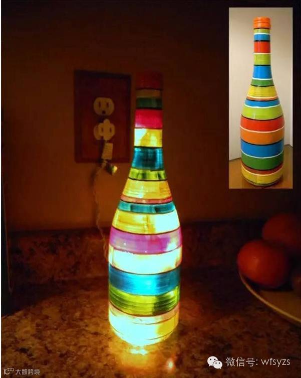 也可以做成营造气氛的灯具,在瓶体涂上色彩,或者是放入一些七彩的小灯饰。