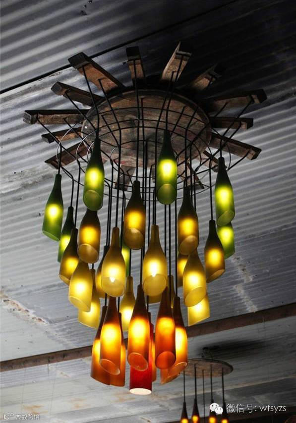 可以做成酒瓶灯具,Blingbling的,像下面这几款吊灯.....