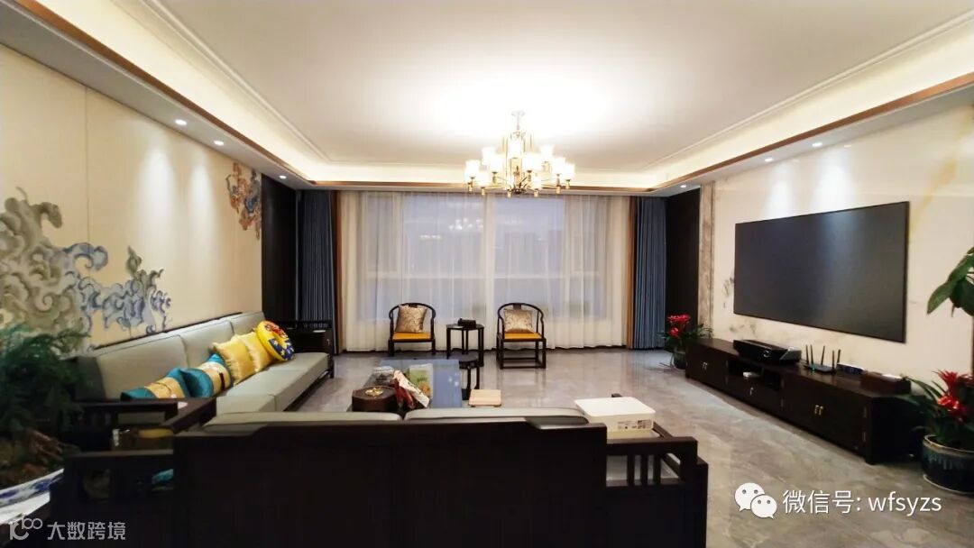 ▼客厅空间,设计师隐去了传统中式繁复沉重的设计表现,保留中式深木色家具的典雅庄重。客厅是家人的聚集地,也是我们招待亲朋好友的地方,贴合屋主的生活需求。宽敞、明亮让整体空间纯粹干净又留有中式气韵,将撩人心扉的雅致意趣展现。