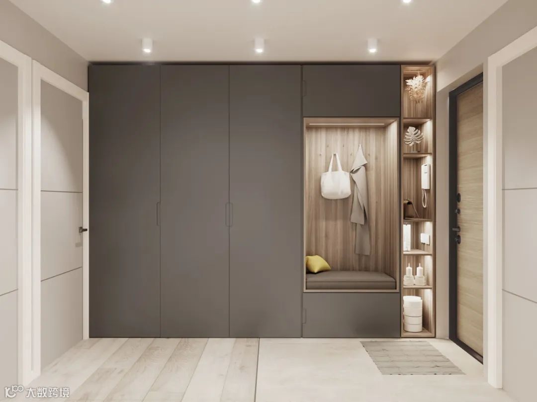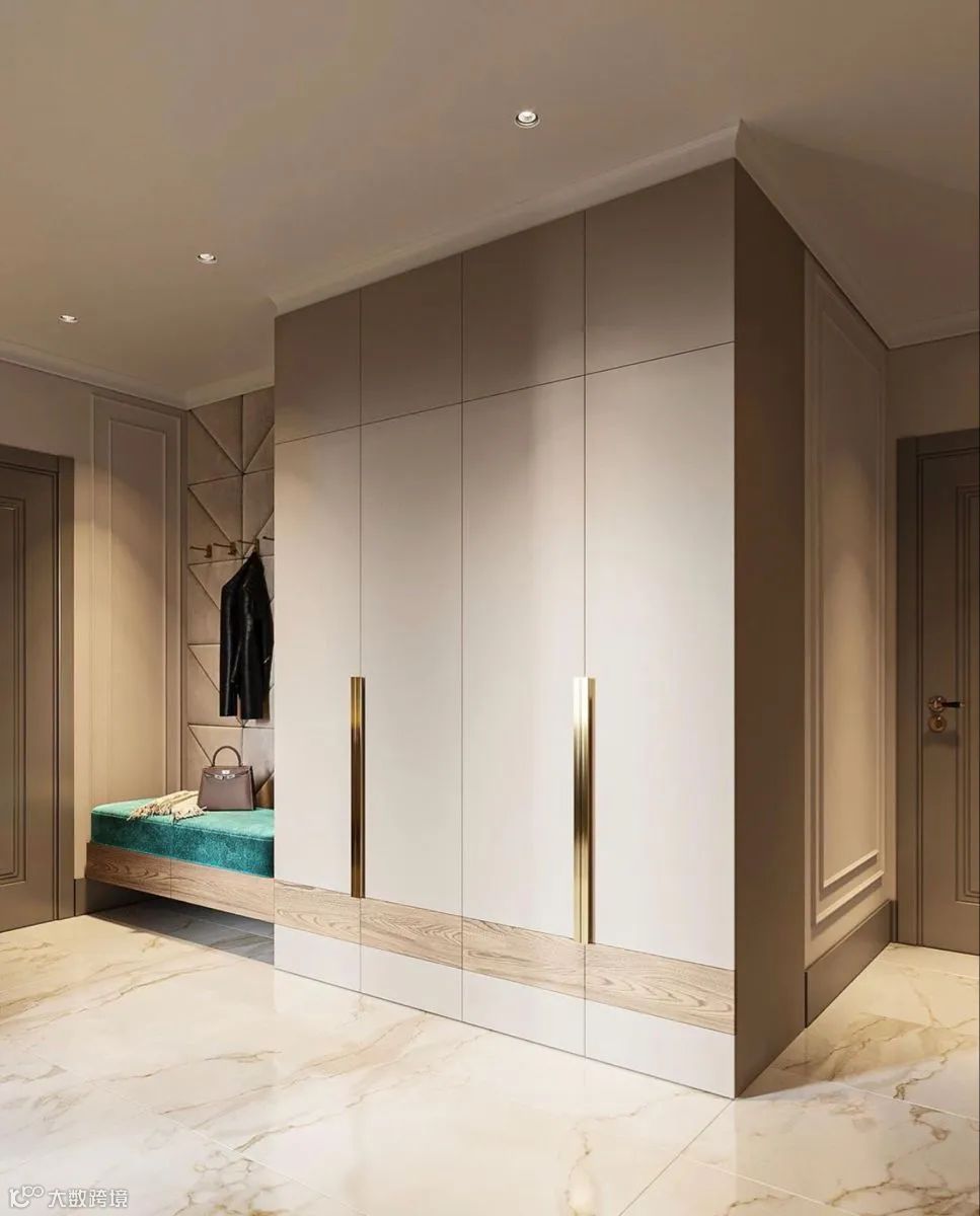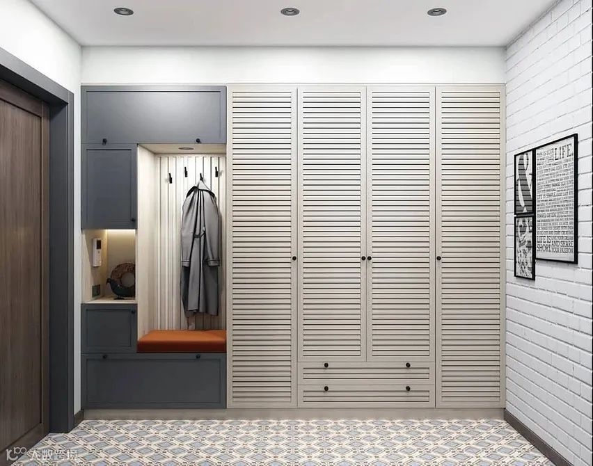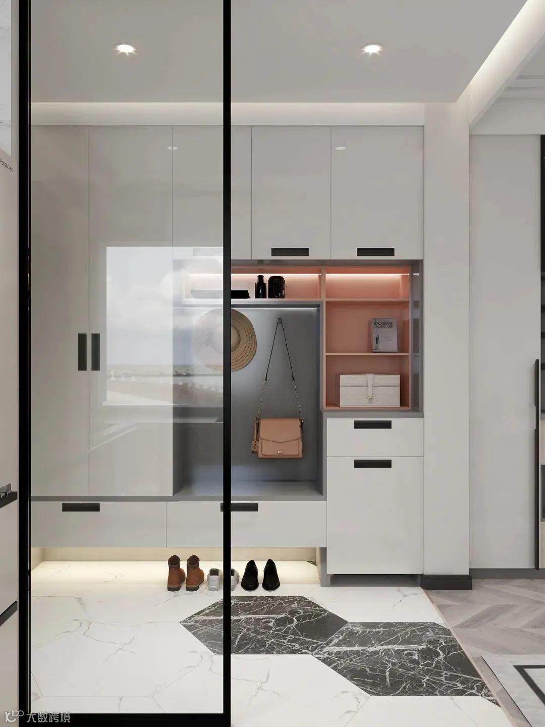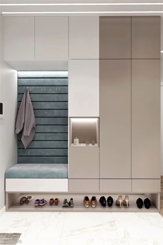 门厅是家的第一张名片,但是如何布局这个空间呢?很多人比较注重门厅的功能性,如漂亮合理的鞋柜衣柜一体式设计,不仅将入门空间区域完美地利用上,增加