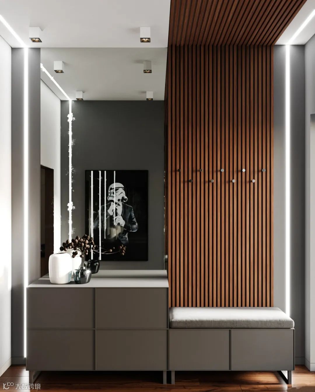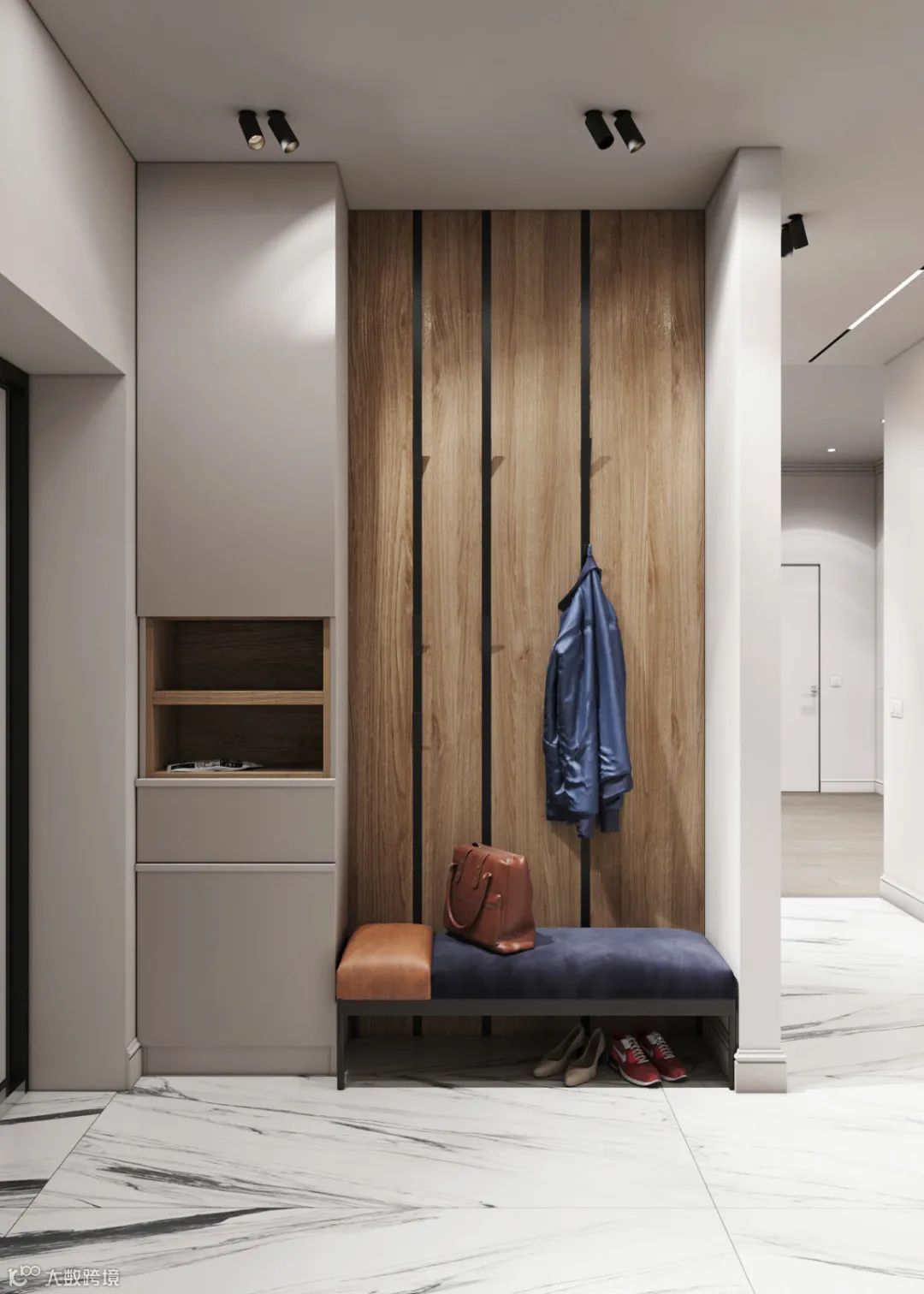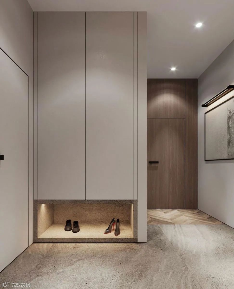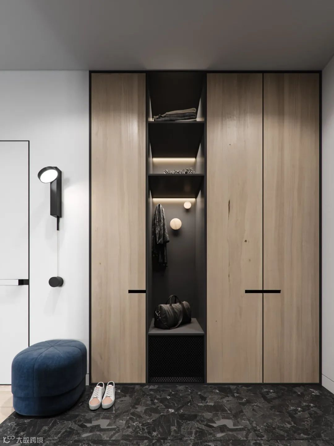 门厅是家的第一张名片,但是如何布局这个空间呢?很多人比较注重门厅的功能性,如漂亮合理的鞋柜衣柜一体式设计,不仅将入门空间区域完美地利用上,增加