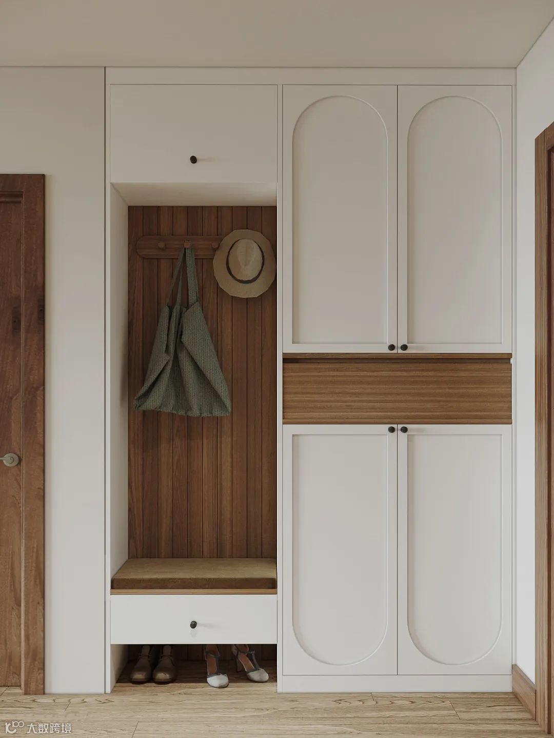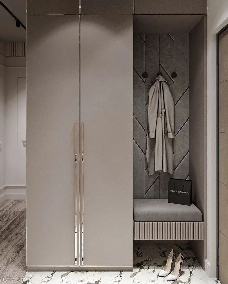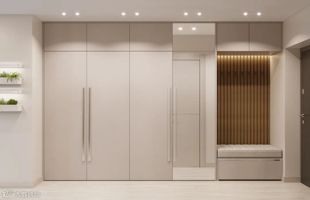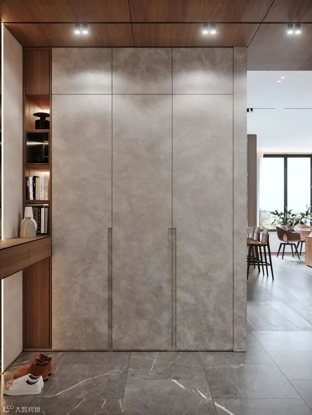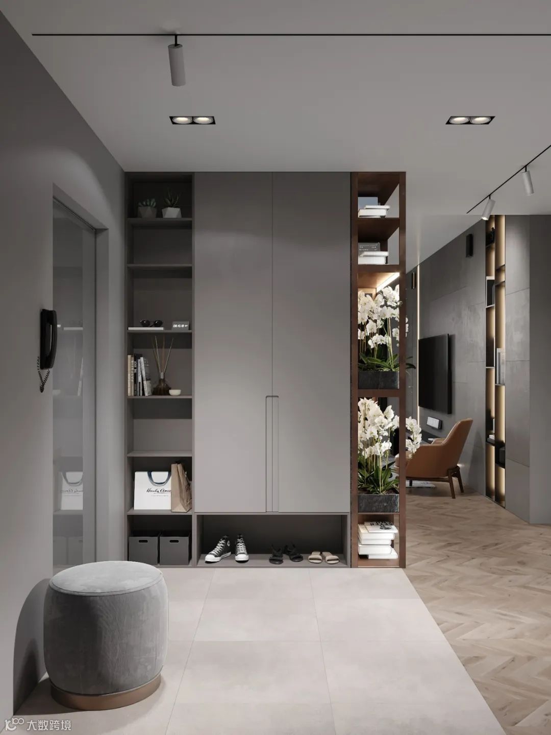 门厅是家的第一张名片,但是如何布局这个空间呢?很多人比较注重门厅的功能性,如漂亮合理的鞋柜衣柜一体式设计,不仅将入门空间区域完美地利用上,增加