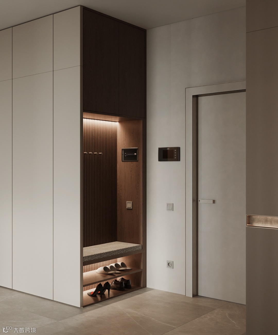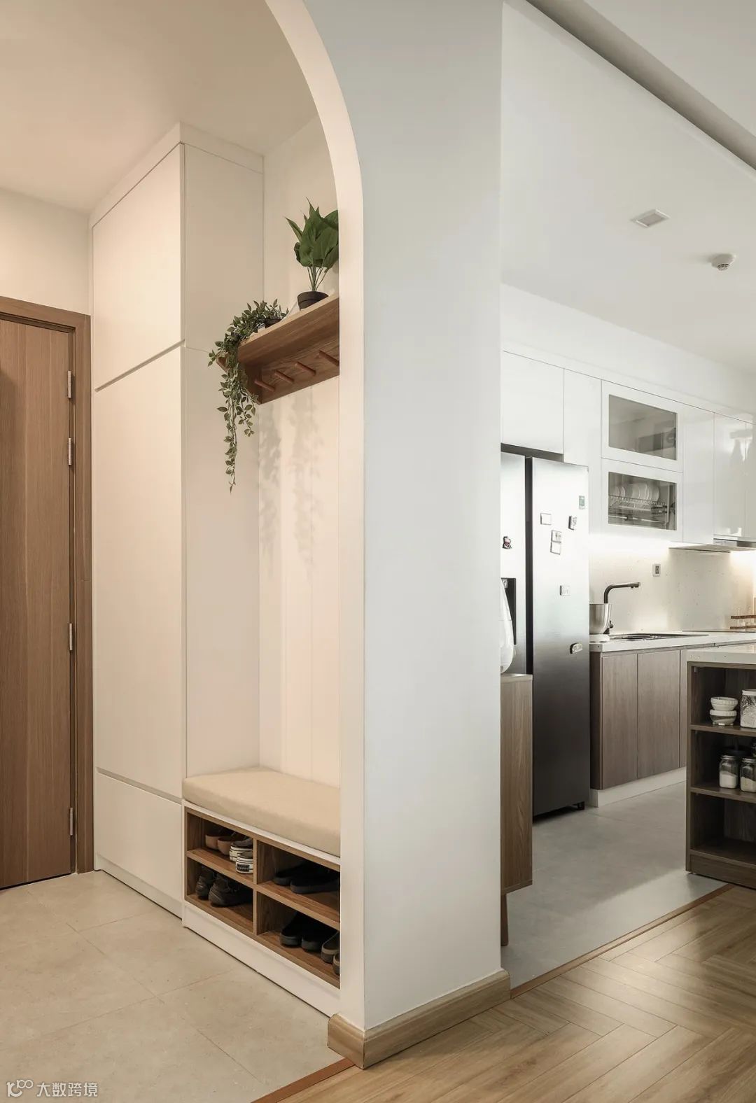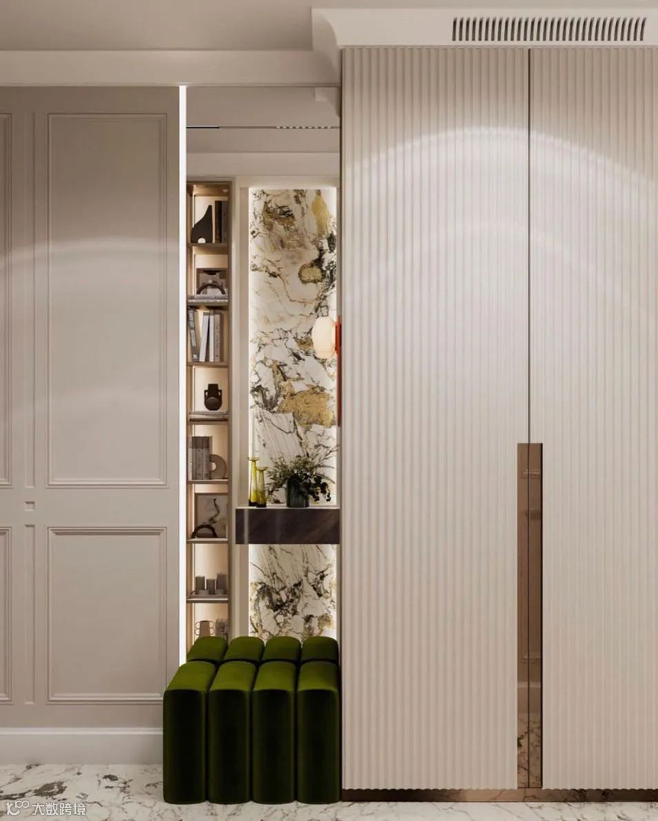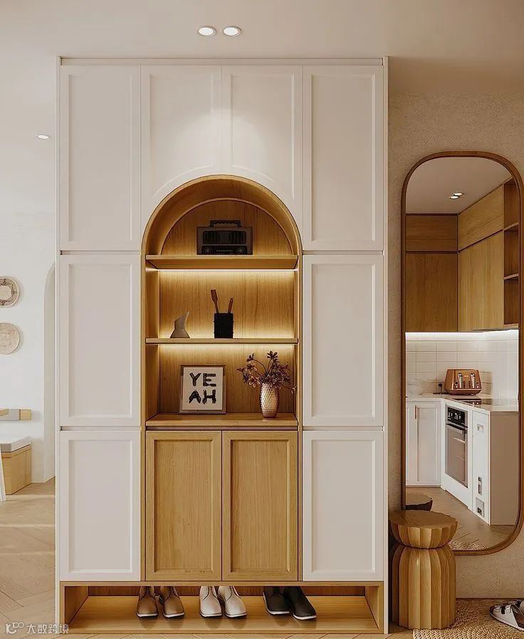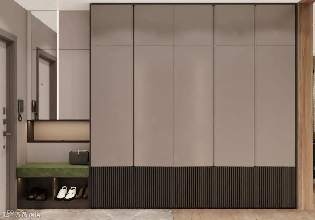 门厅是家的第一张名片,但是如何布局这个空间呢?很多人比较注重门厅的功能性,如漂亮合理的鞋柜衣柜一体式设计,不仅将入门空间区域完美地利用上,增加