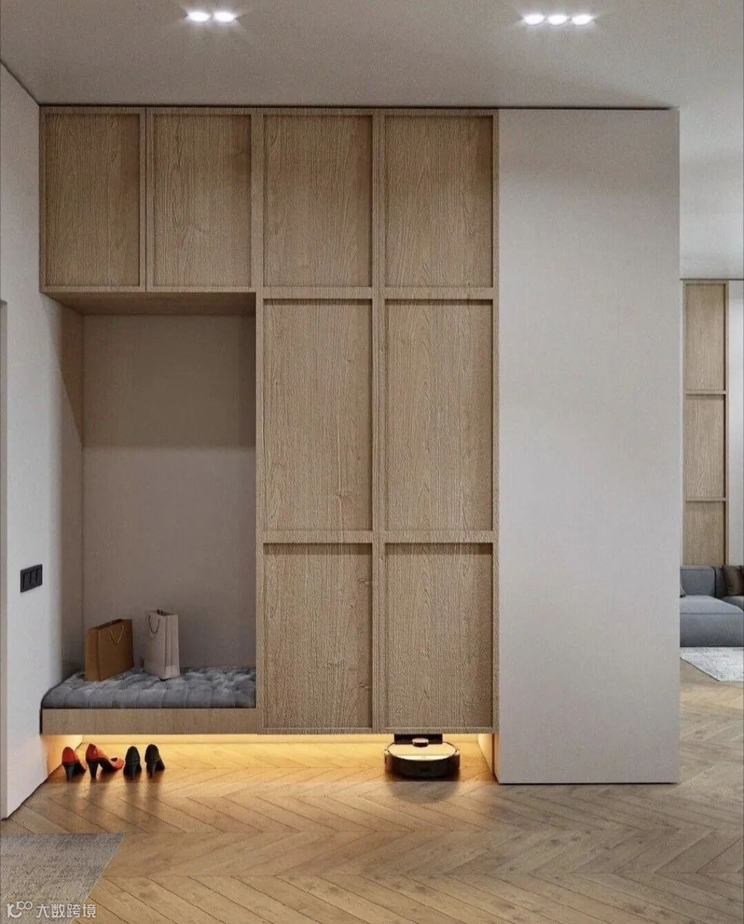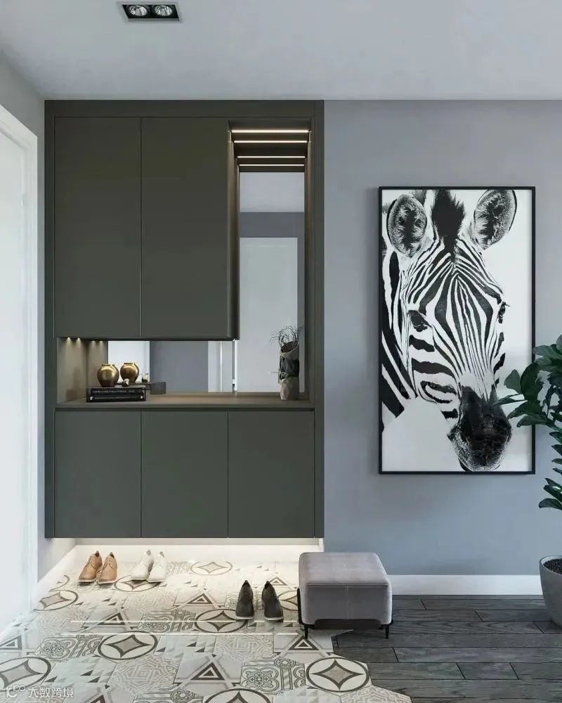 导读:入户鞋柜 门厅是家的第一张名片,但是如何布局这个空间呢?很多人比较注重门厅的功能性,如漂亮合理的鞋柜衣柜一