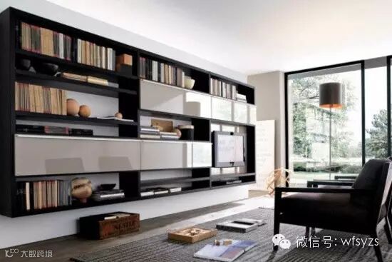能与客厅融为一体的收纳设计应该是电视柜和整墙的置物架。电视柜下方门的柜子可以放各种电线和工具箱,上方的开放式柜体和整墙置物架除了置物外,还能起到很好的展示作用,将书本整齐码放在上面,再放上几个造型趣味的装饰品,不但不会影响客厅整体效果,反而在严肃之中多了几份俏皮。