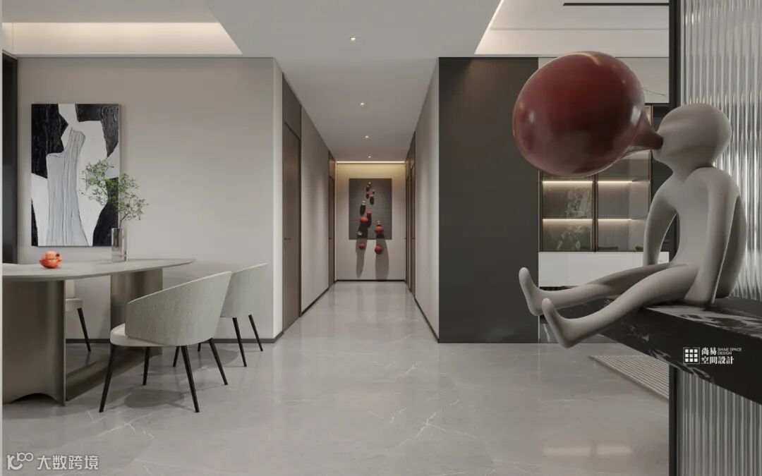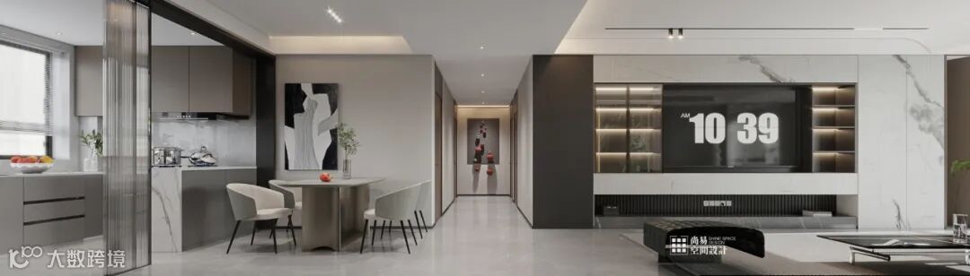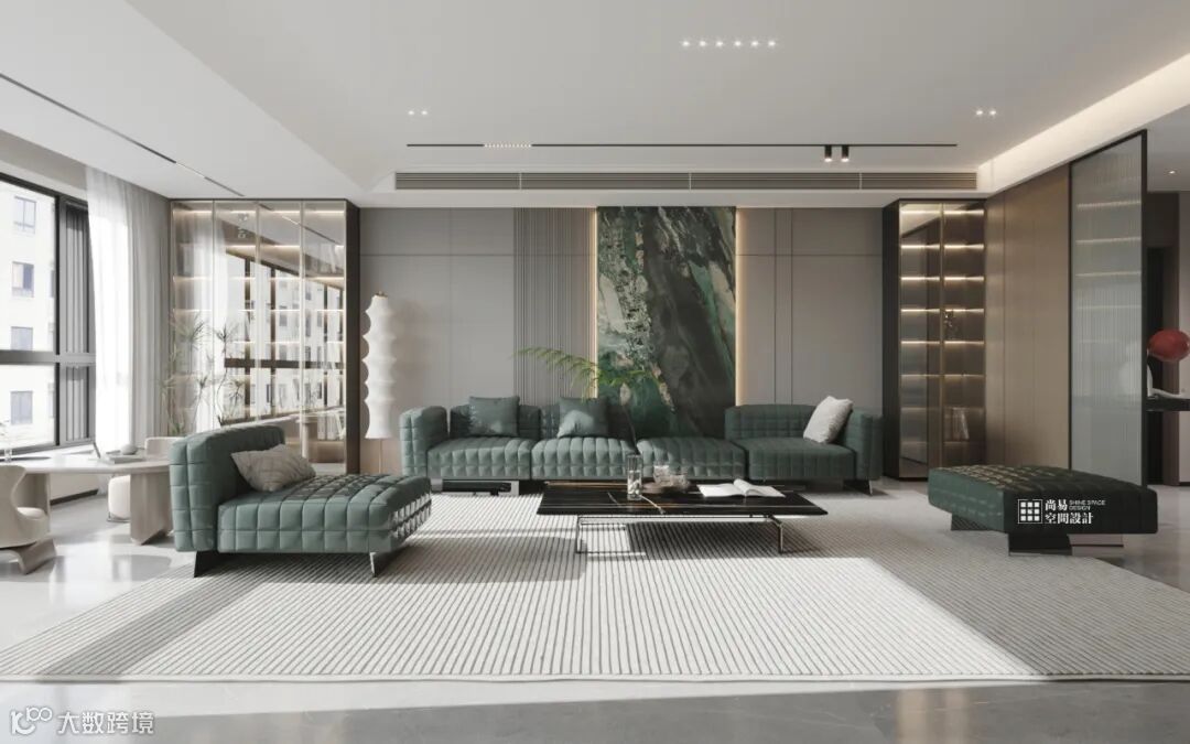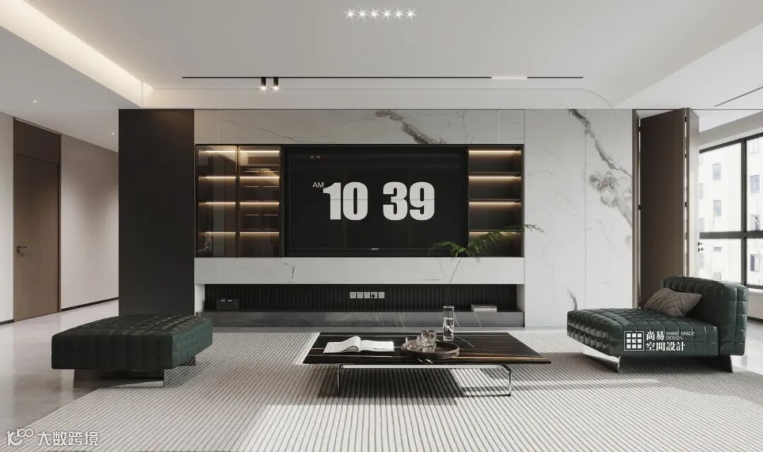 简约的条纹理地毯,In a large flat space,搭配上黑白纹理的大理石茶几Build urban residences that can travel freely.