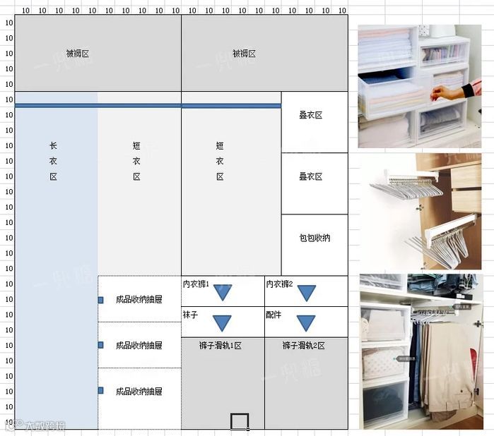 很多衣柜格子少,但是却做的非常高,收纳空间是有的,但是很不方便,衣服堆得越高,越不好拿,如果要取最下面的衣服,那上面的那一摞很容易塌掉,重新叠。