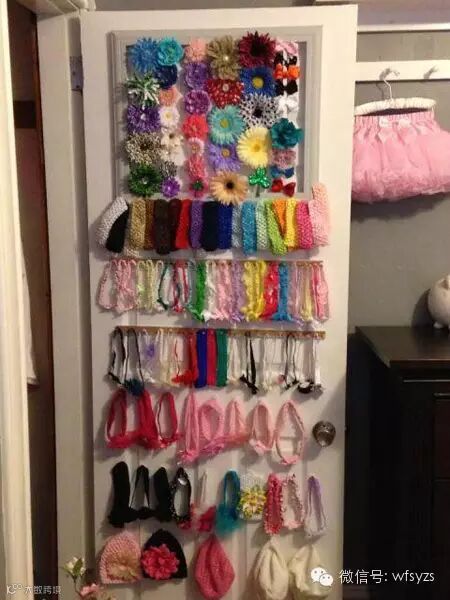 长头发的女孩子最不缺的就是五颜六色各种款式的发饰,平时随意堆放在一起,要用的时候真的很难翻找。像这样把它们都挂在门上就清晰多了,想用哪一个的时候一下子就能找得到。