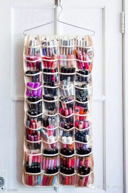 五颜六色的唇膏、眉笔等等占据了不少空间,用收纳袋挂起来能省不少地方,找起来也方便。