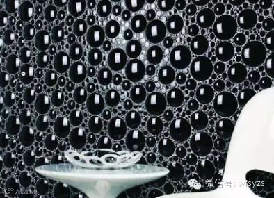 在独立墙面或隔断墙上大胆使用黑色,是纯色派马赛克铺陈方式的代表作。因马赛克遇光可以反射,因此纯黑色的墙面不仅不会显得压抑,反而带有一种璀璨珠宝搭配晚礼服的高贵典雅。大面积使用纯色马赛克的铺贴手法看似单一,实际上马赛克的内部可以蕴含丰富的“玄机一如带有金属拉丝或冰裂纹效果的马赛克大面积铺贴在墙地面之后,借助光影表现出来的整体装饰效果堪称惊艳,无论彩度还是色泽,都比其他装饰材料更为炫目。