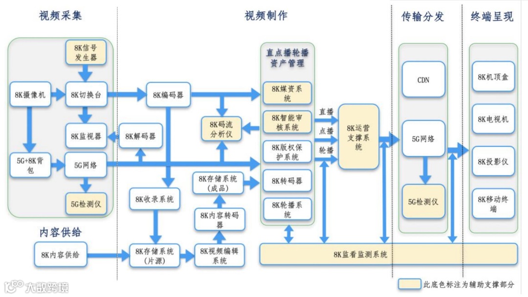 5G+8K 超高清视频产业链国产化端到端流程图