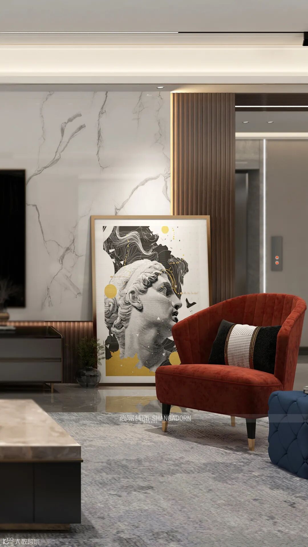 不同材质、纹理用柔和的浅色调去表现,串联在空间之中,