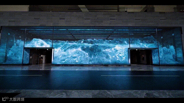 除了上面的巨幕海浪,D'Strict 还创造过令人惊艳的三维动态视频墙,这个项目位于韩国轮胎公司Nexen的研发办公楼的底部大堂。