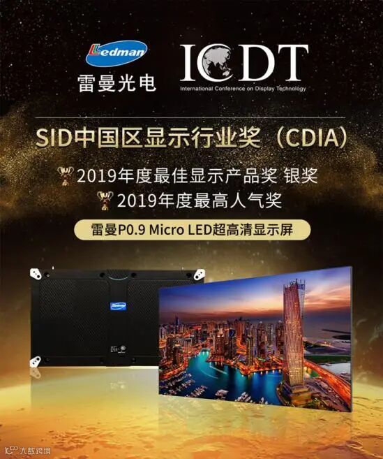 其中,雷曼光电P0.9 Micro LED超高清显示屏获得2019年度最佳显示产品奖银奖与最高人气奖两项大奖,成当晚大赢家。