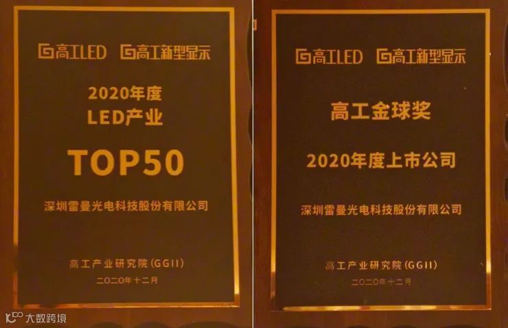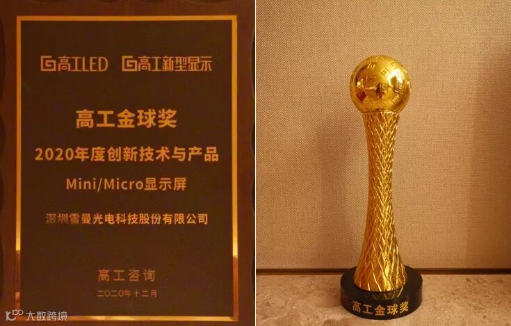 在12月15日结束的2020高工LED年会·高工金球奖颁奖典礼上,雷曼光电凭借优异的产品