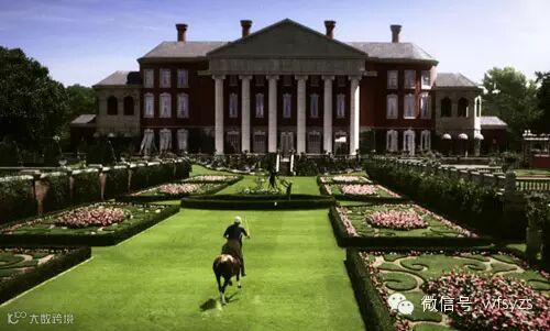 与盖茨比的宫殿隔海相望,黛西的红砖庄园设计以纽约长岛上的OldWestbury花园为灵感,格鲁吉亚风格的建筑与盖茨比府邸的恢弘截然不同。而其室内设计也更偏现代主义风格。