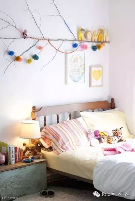 墙壁装饰树枝,给孩子的童话小屋,最简单即童真。