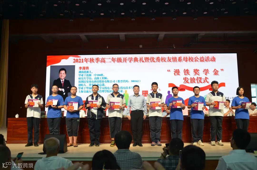 李漫铁先生作为涟源一中校友、优秀的科技产业企业家代表,于2012年在母校涟源一中设立“漫铁奖学金”“漫铁助学金”“漫铁园丁奖”,十年来每年出资30余万元奖助师生200余人;每年暑假组织优秀教师及优秀学生代表来深惠游学;捐助电子显示屏产品,助力学校的日常宣导工作,以实际行动支持母校发展,践行民族企业的社会责任。