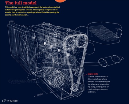 你开车的时候,发动机舱是这样运行,不过速度比图里快一万倍▼