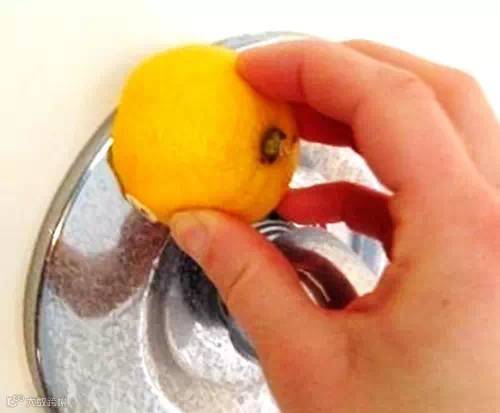 卫生间沾满水渍的镜子和水龙头,用柠檬一擦立刻恢复闪亮。