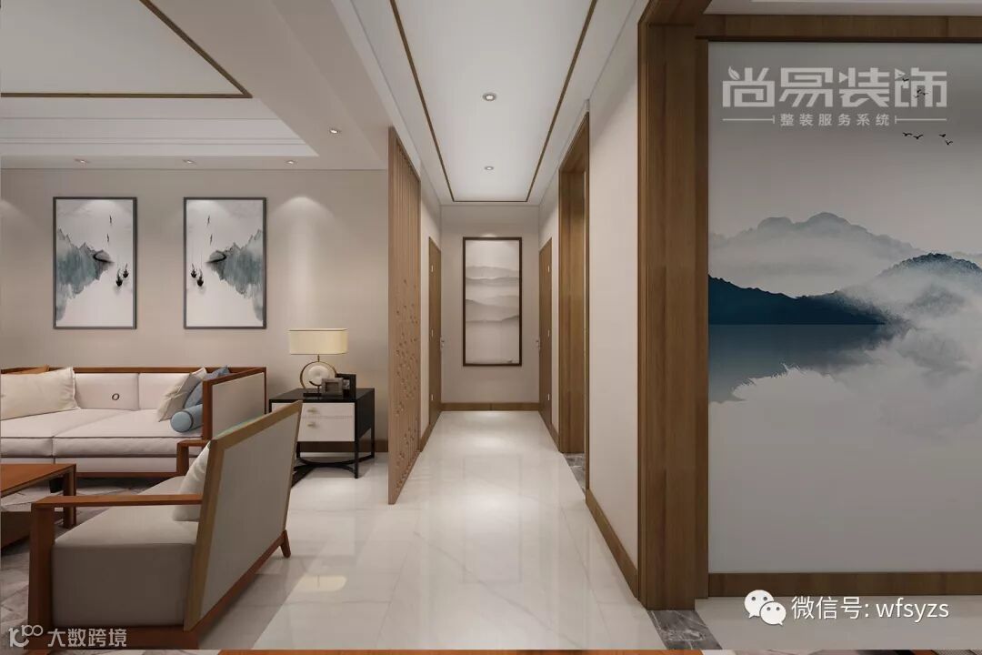 新中式装饰风格的住宅中,空间装饰多采用简洁、硬朗的直线条,有些家庭还会采用具有西方工业设计色彩的板式家具与中式风格的家具搭配使用。