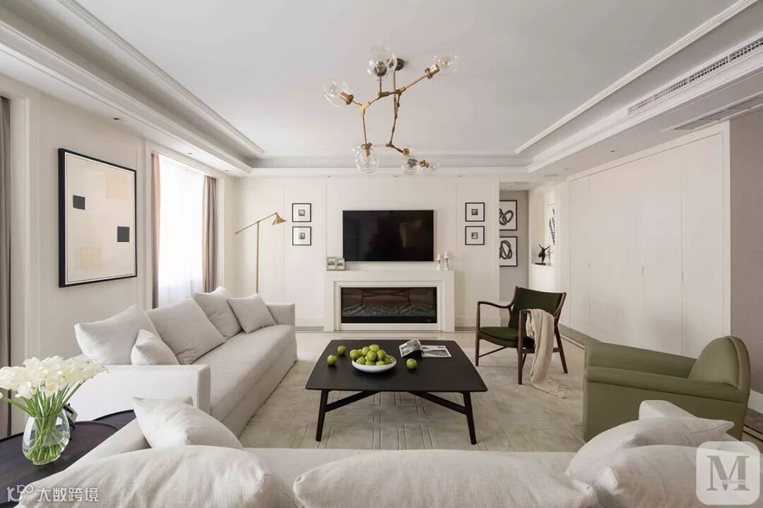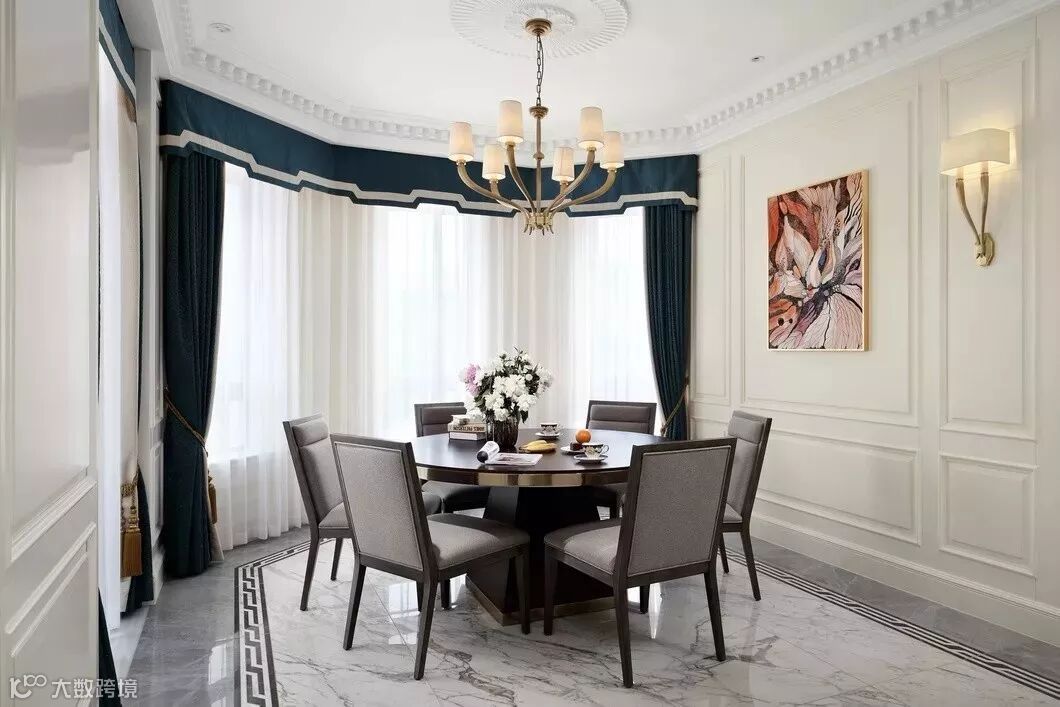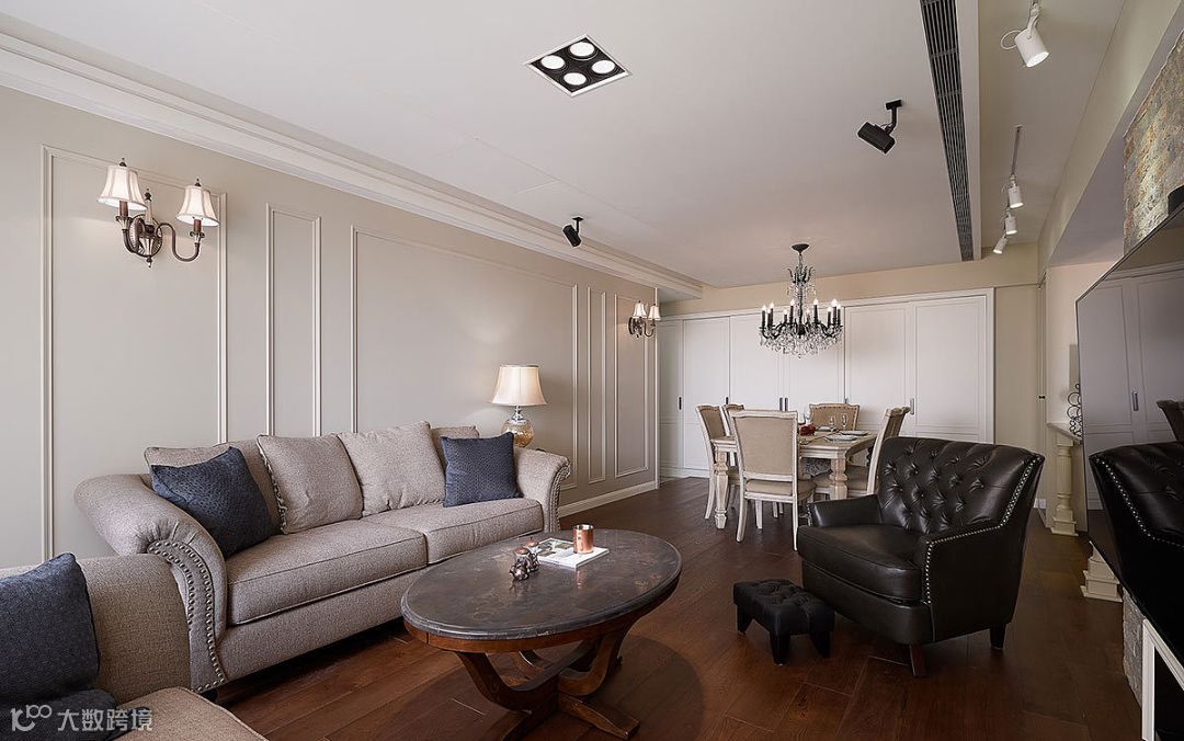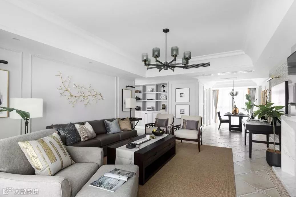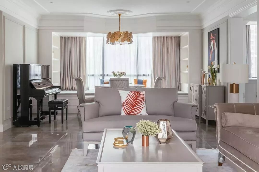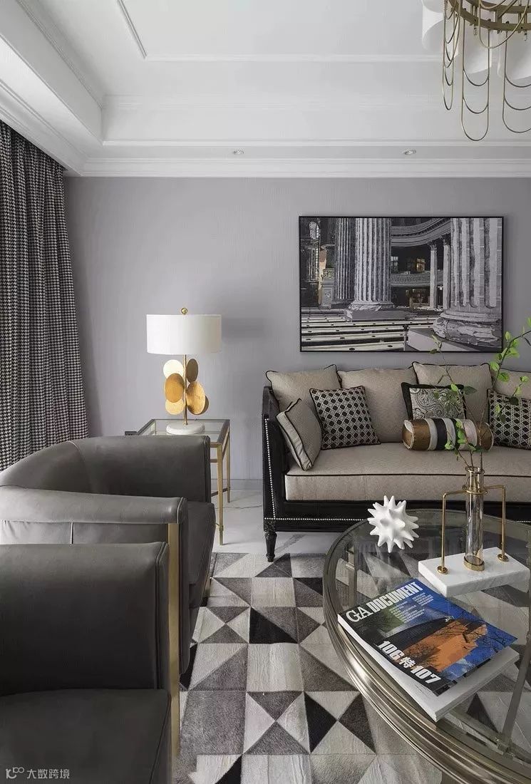 花型的石膏线来装饰,提高房子古典华丽感,显露尊贵、典雅中渗透豪华的设计表现,体现出居住人追求品质、典雅生活,视生活为艺术的人生态度!美式客厅顶部喜用大型灯池,并用华丽的枝形吊灯营造气氛。在欧式美式风格的设计里,这种石膏线被应用的十分广泛。