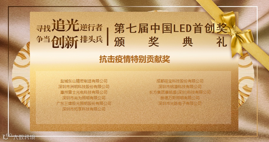 LED首创奖旨在表彰在中国LED行业首度创新和在自主创新方面做出突出贡献的企业、促进行业健康发展,雷曼光电荣获LED首创奖知识产权15强企业。雷曼光电全资子公司拓享科技荣获得抗击疫情特别贡献奖。