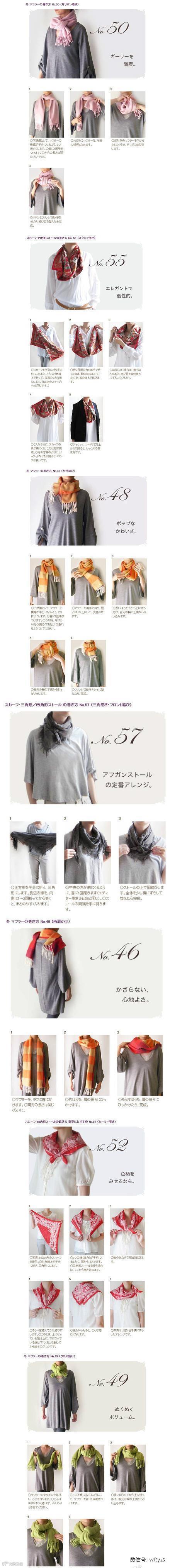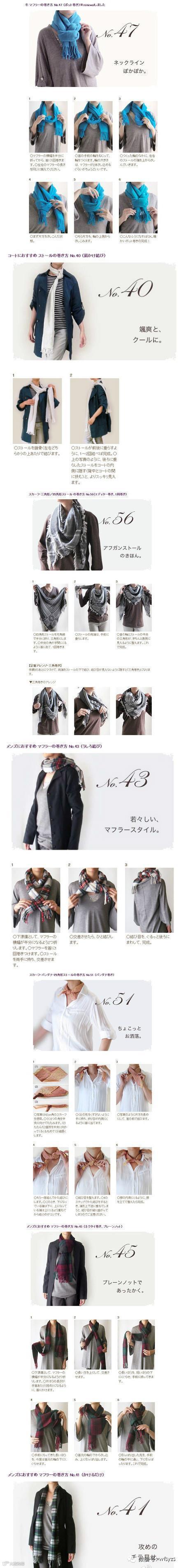 寒风凛凛,女生们可以看下各种围巾的围法~~~